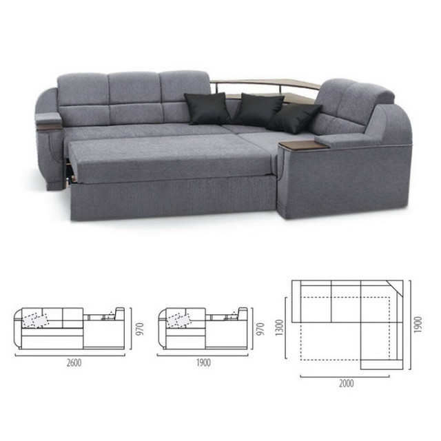- Зовнішні габарити: Ширина - 2600 мм Глибина - 1900мм Висота -970мм