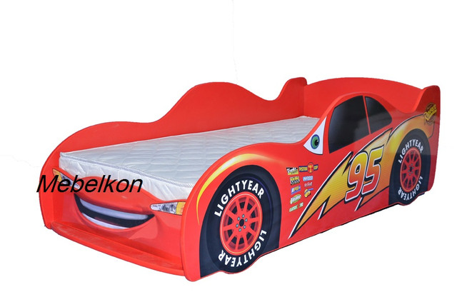 Описание: Кроватка машина Молния Маквин красная Mebelkon